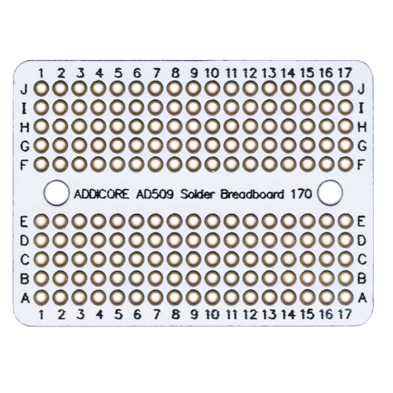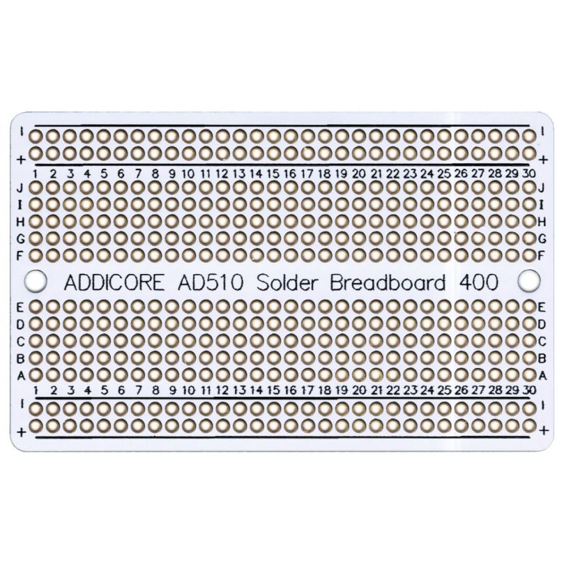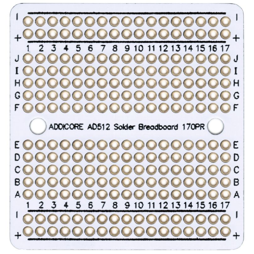 The rows and columns are labeled just like the solderless breadboards for easy reference, the circuit pads are gold plated for superior solderability and the white soldermask makes your projects look awesome!
